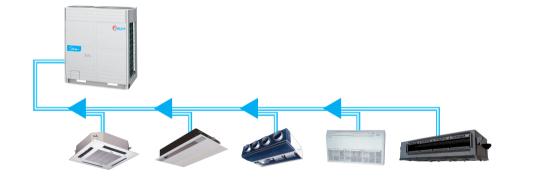 - 125m長配管,50m室內(nèi)外機(jī)高落差,15m室內(nèi)機(jī)之間落差